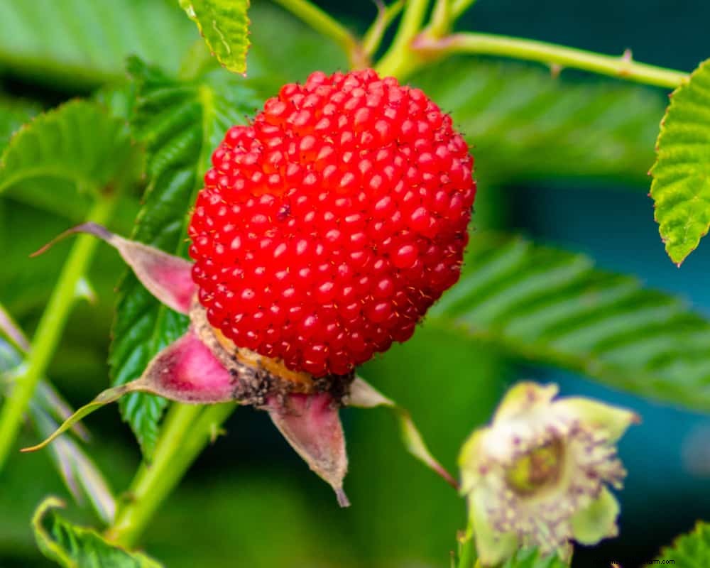 Wineberries, also sometimes known as dewberries, are an Asian species of raspberry, Rubus phoenicolasius.