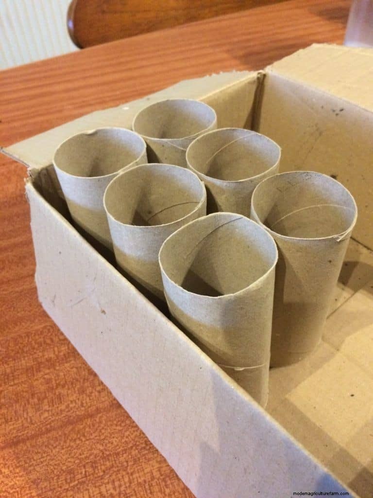 There are several different ways to do so. You can make newspaper pots, use egg shells or other organic materials, or, as I have chosen to do in this instance, use toilet roll tubes.