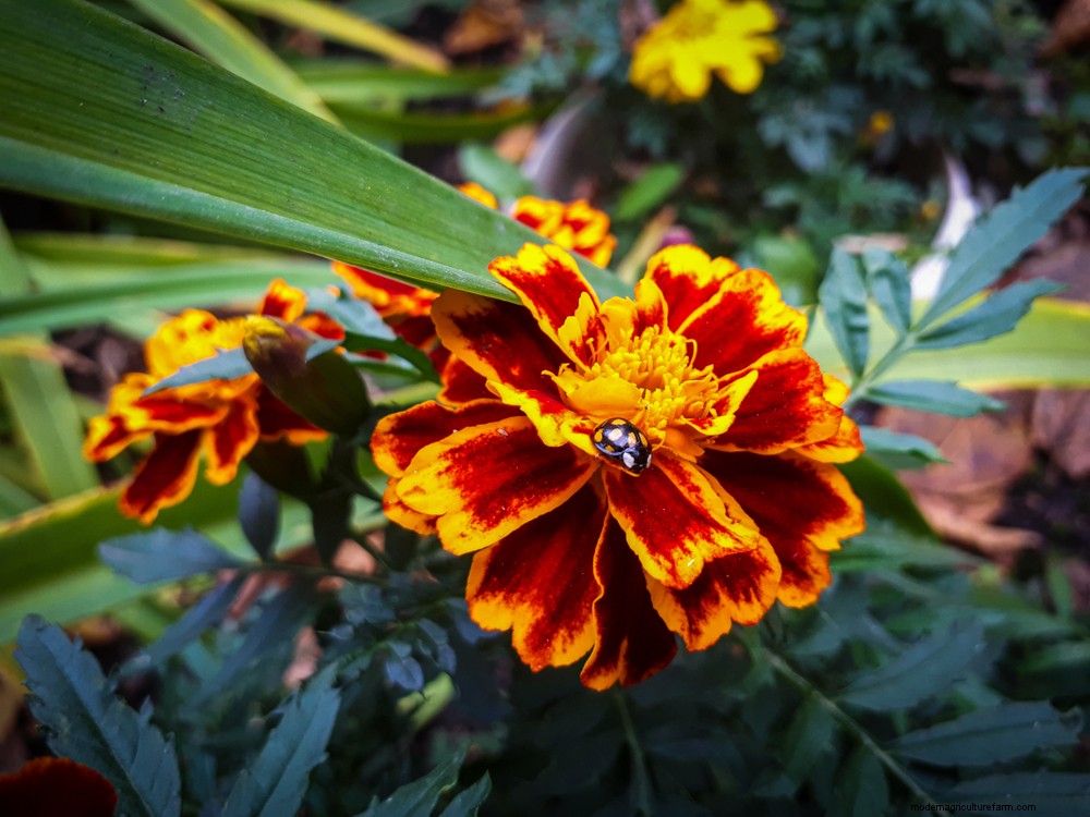Marigolds can help to bring in ladybugs, lacewings, hoverflies, parasitic mini-wasps and other predatory insects that will eat aphids and other pests which can damage your crops.