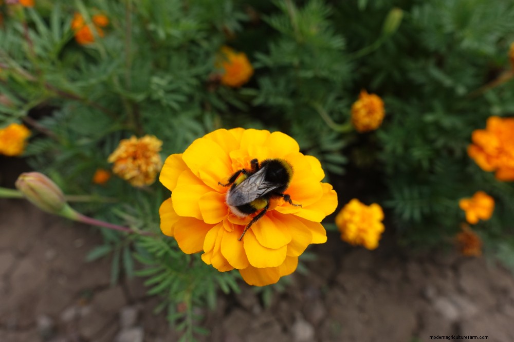 Marigolds can bloom over quite a long period of time. Their blooms are therefore an excellent resource for bees and pollinators throughout the growing season.