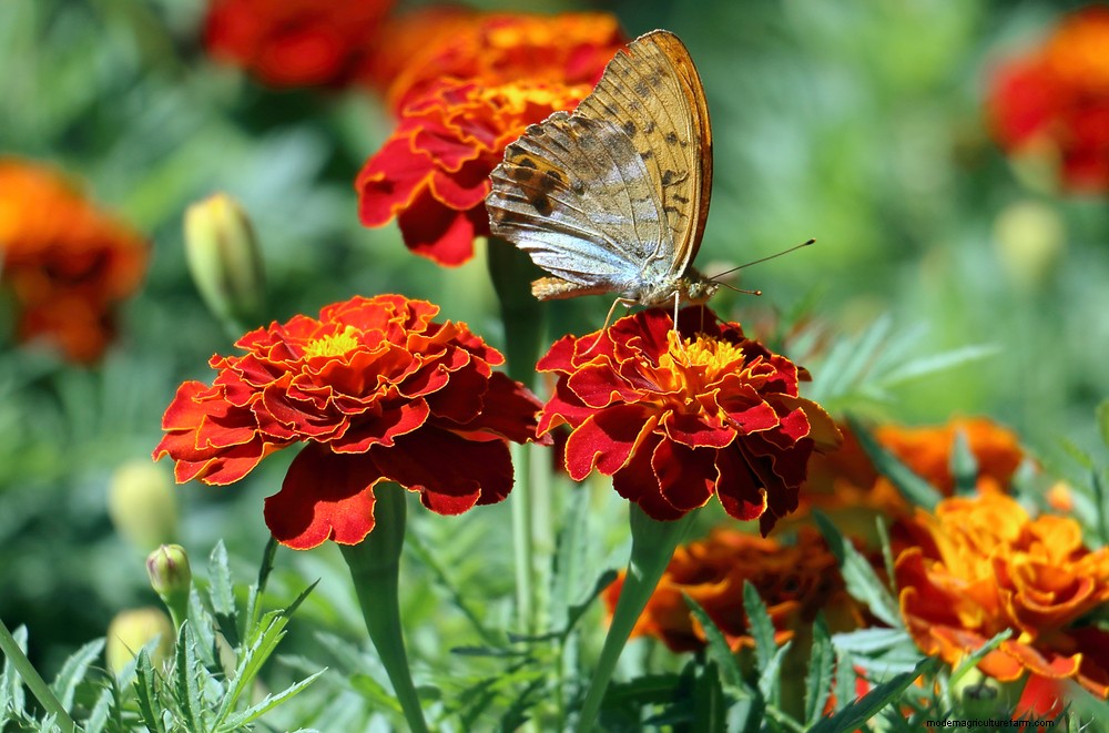 Marigolds can also be a great plant choice for attracting butterflies to your garden. Tagetes patula can be particularly successful in drawing in these beautiful creatures.
