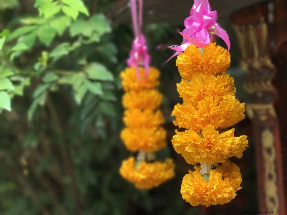 You can also string marigolds to make beautiful garlands for your home or garden, or for a special event. Such garlands are popular for weddings and other special occasions in India, and are also popular for the Mexican Day of the Dead.