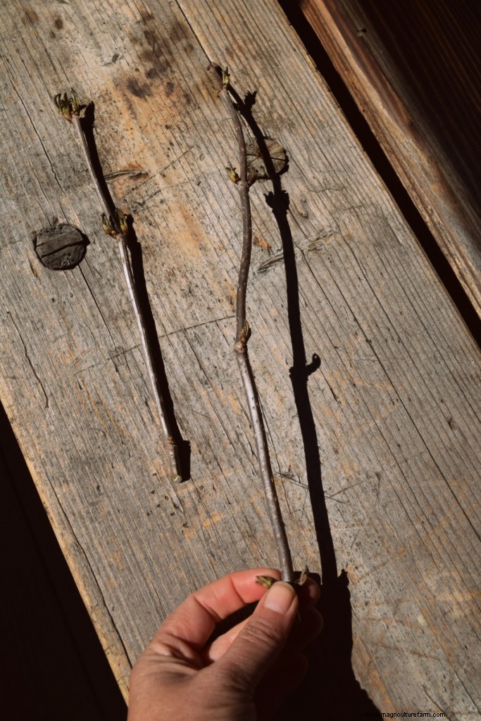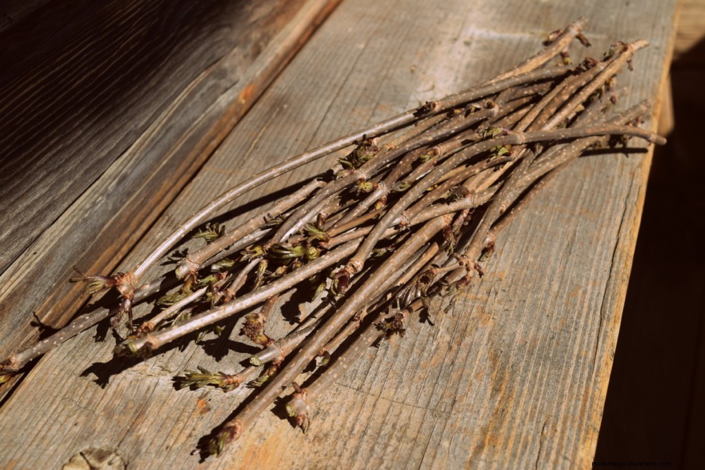 From one branch you can take several cuttings, always making sure to include at least 4 buds. They should also be 6-10″ long, depending on the branches you collect.