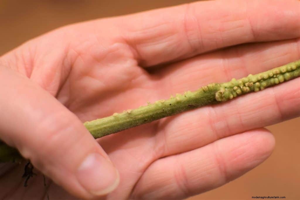 Suckers are side shoots that emerge from the “crotch” of the main stem and a branch, as shown below.