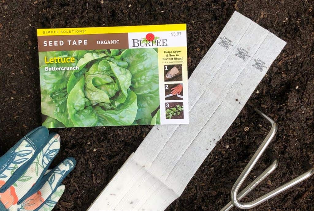 Using seed tape may cost a bit extra but it saves time and provides the exact spacing needed between your future lettuce plants.