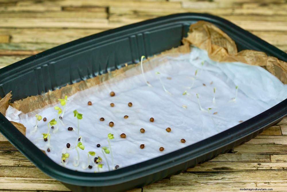 As mentioned above, if you don’t have compost/ potting mix, kitchen paper or even toilet paper can work for some of the fast growing seeds you can grow.