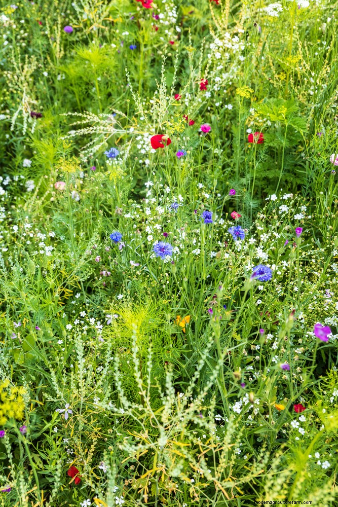 Be sure to let annuals flower and produce seeds before mowing at the highest setting, or scything, for the first time. You may even choose to wait a bit longer for the late-blooming species to drop as many seeds as possible. The longer you can wait out, the stronger your wildflower meadow will be next year.