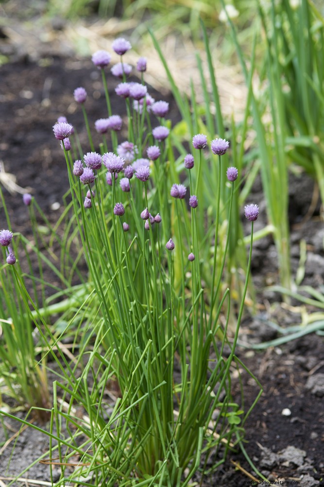 Chives are an allium, and like other members of the onion family, they have a strong aroma that can help to prevent pests in your garden. This means that they are one of the plants that has wide application as a companion plant. When in flower, chives are also a great pollinator-attracting plant.