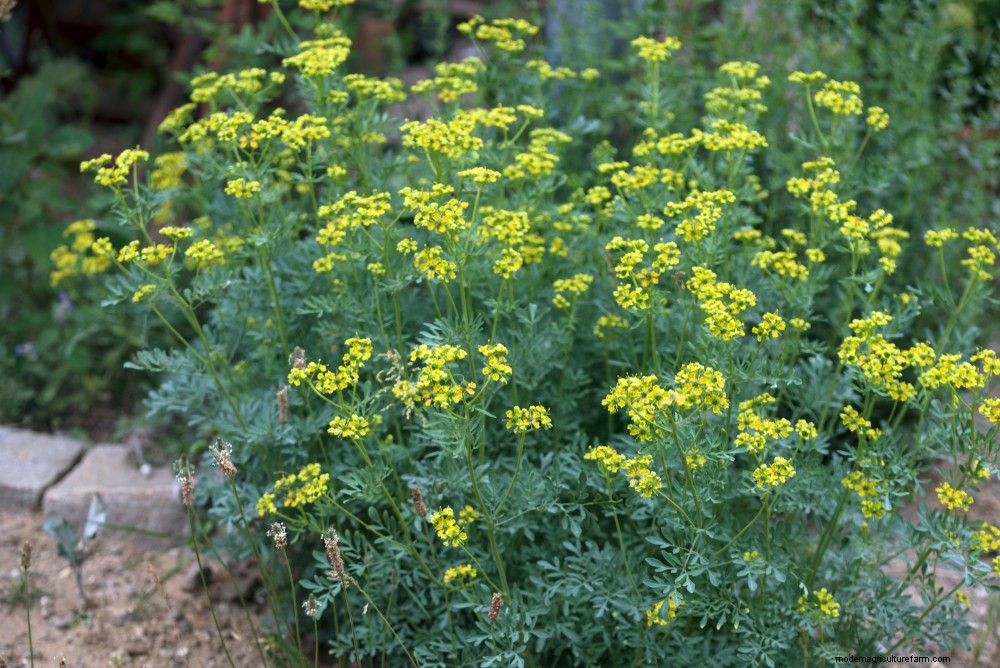 Rue is toxic in large quantities, and so caution should be taken. However, it has been used as a pot herb and in herbalism in small quantities.