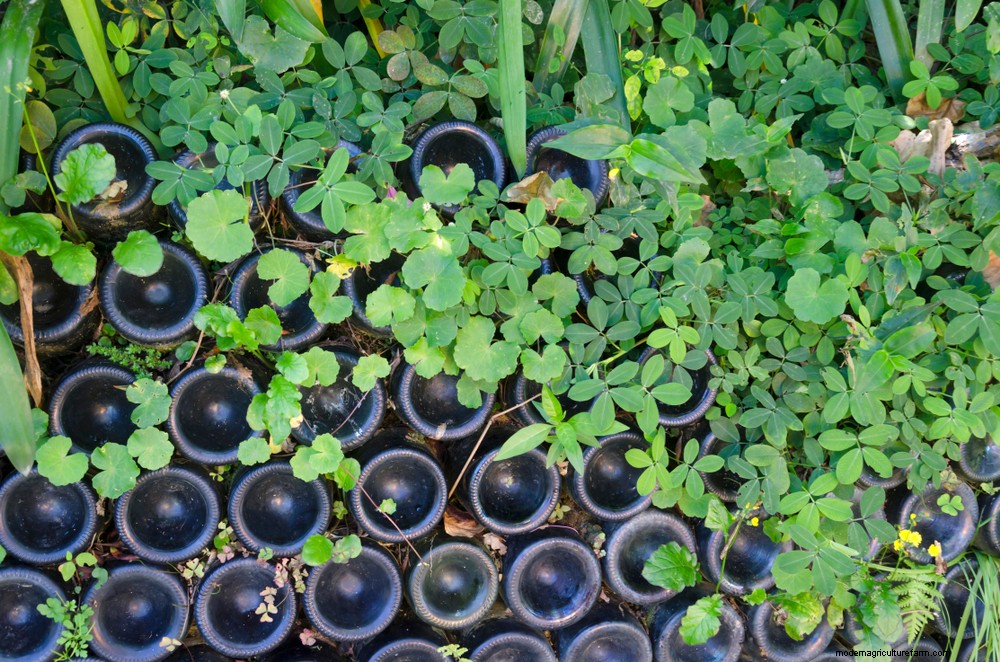 You could also try something a little more elaborate and make a higher raised bed by stacking bottles on their side.