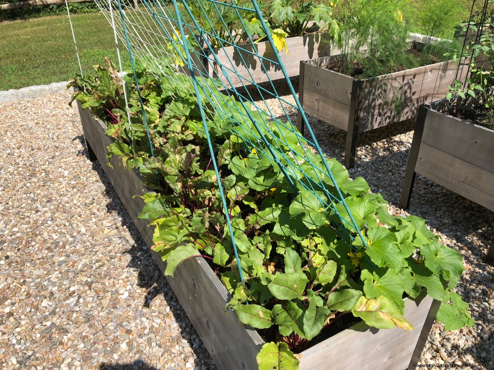 Attaching a trellis to your raised bed edge can make it easier to make the most of the space.