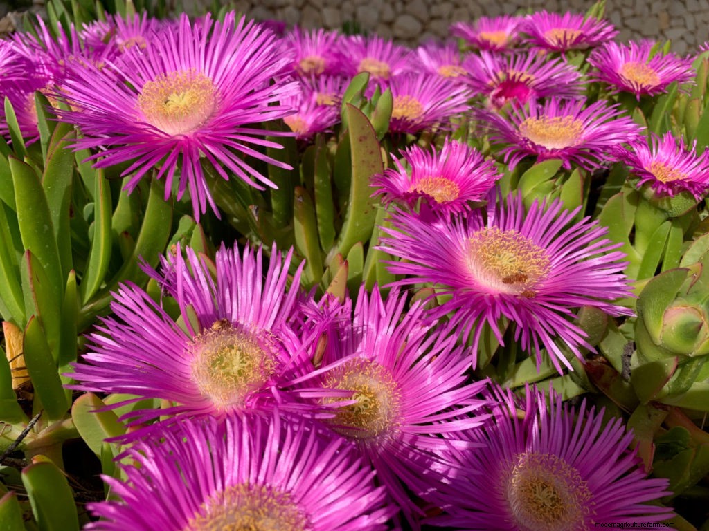 This long blooming perennial plant forms low-lying masses of brightly colored reddish or purple flowers from June through September.