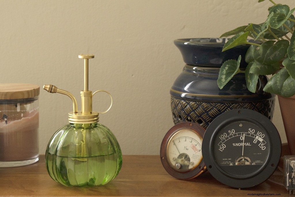 I love the look and the pump action of old bulb-style plant misters. It looks nicer sitting in my living room than a plastic spray bottle.