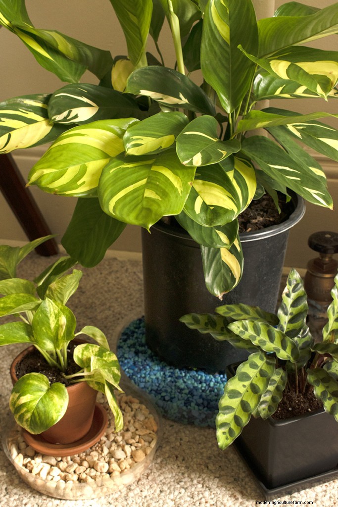Along with misting your plants, pebble trays are an easy way to add more moisture in the air for your plants. Any shallow dish will do, such as plastic plant drip trays. And pie plates work equally well.