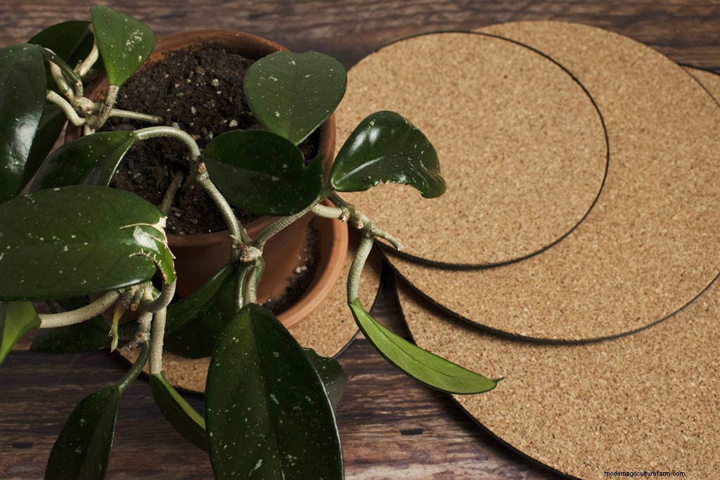 I recommend a cork mat with plastic backing, which will protect furniture from water stains and scratches from rough planter bottoms. I purchased several packs of these cork plant coasters from Amazon.