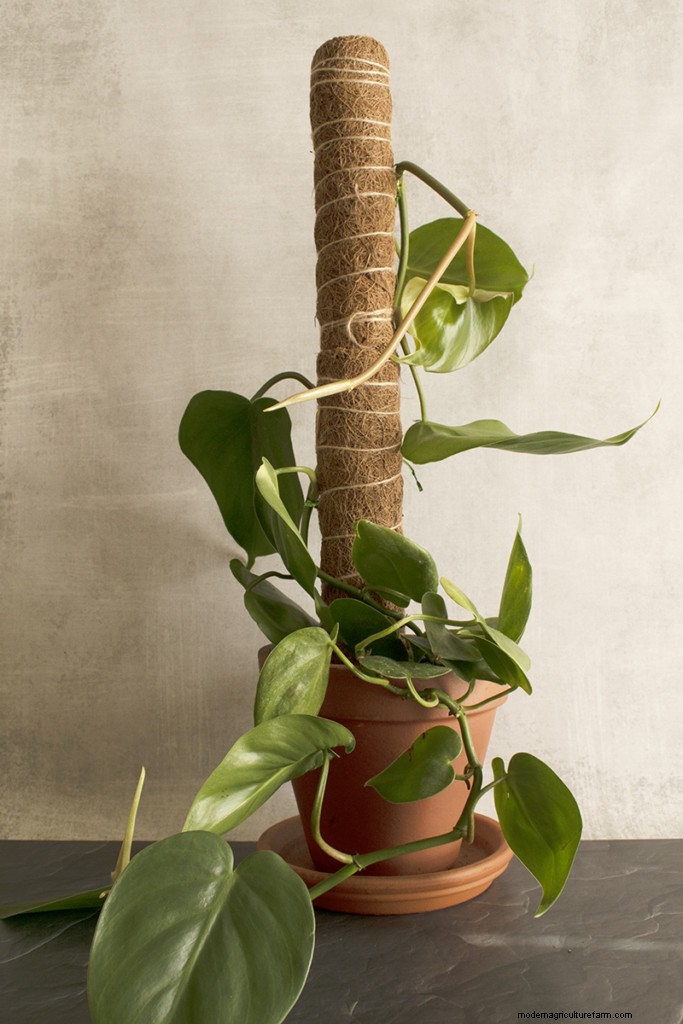 These types of plants naturally climb the sides of trees. The moss poles mimic the rough surface that they cling to. The poles are inexpensive and give your plant the support it needs to grow high.