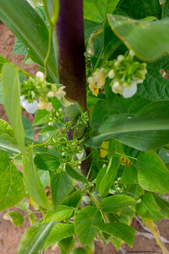 Beans need to climb in order to reach enough sunlight to produce their crop. The beans climb the corn and wrap and wind their way around the plant in search of sun.