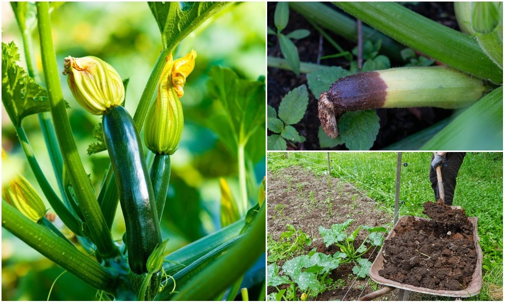 These plants can be prone to rotting if water gathers around the base of the stem. A good tip to avoid this problem is to plant your zucchini or squash on mounds, so water runs away from the crown.