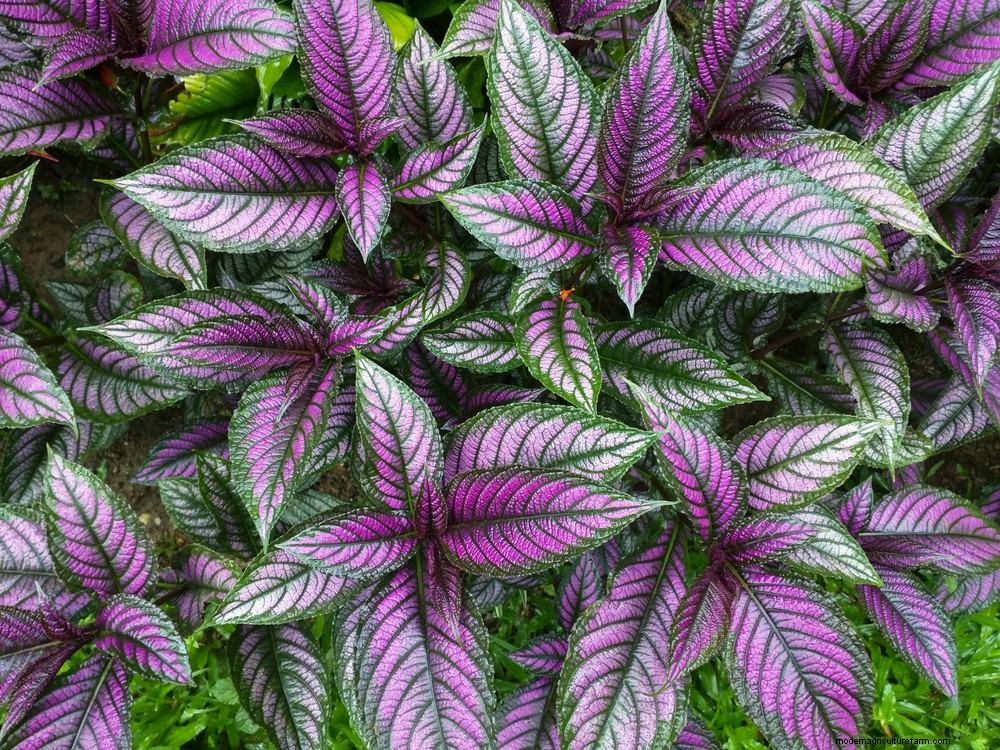 Persian shield will certainly brighten up a gloomy spot in the garden with its vibrant violet colored ovate leaves with distinctive veins that each grow to a length of about 8 inches.