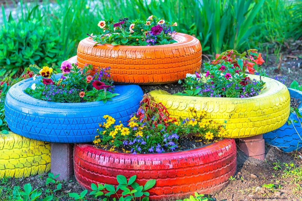 You can also make your tire planters or raised beds more decorative and attractive by: