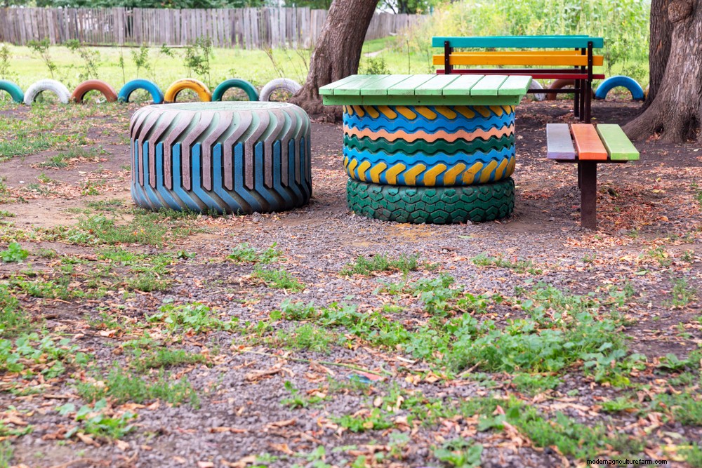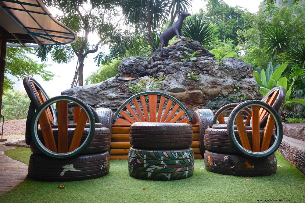 Upcycled tires can be used to make a wide range of outdoors furniture for your outside zones.