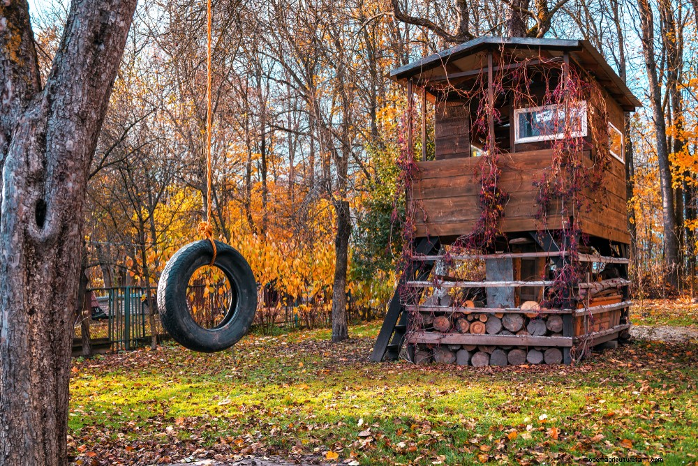 If you have kids that need a space to sit and relax, you could also make a large tire into a couple of half-tire hammocks.