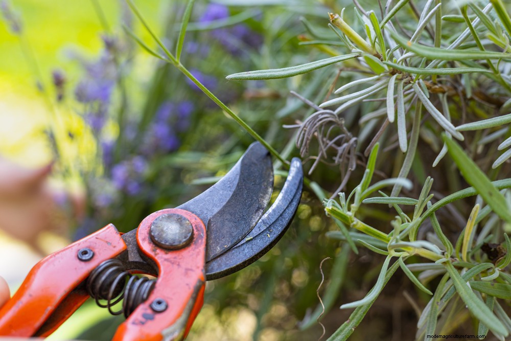 Pruners should be used to remove the flower heads and cut back this years growth, making sure that some new green growth remains. Do not be too frightened to cut back your lavender, especially if it is the English variety.
