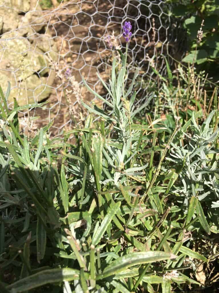 Since I want my lavender to grow a little bit bigger, to fill in this space in the sunny fringe of the forest garden, and want a wilder and more natural look, I am leaving my lavender a little less pruned than you might if you were making a neat edging in a formal border.
