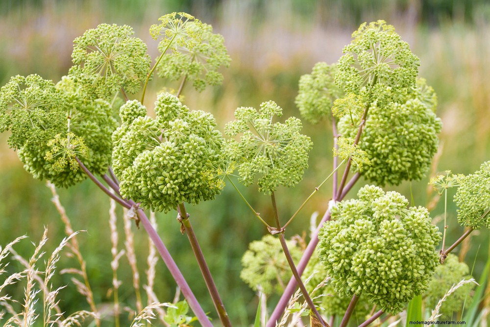 Adding interesting textures and shapes to the flower bed, garden angelica is a large biennial plant that produces compound umbels in its second year.
