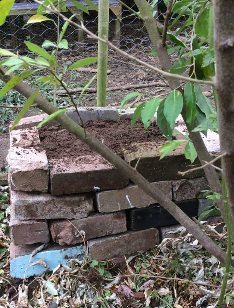 In my new hotbed, I used reclaimed bricks from our barn renovation, dry-stacked to create the bed edges.