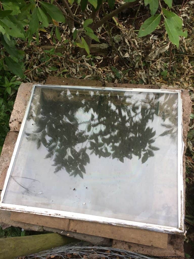 To cover my hotbed, I used a glass windowpane which was reclaimed from the demolition of an old porch on our property.