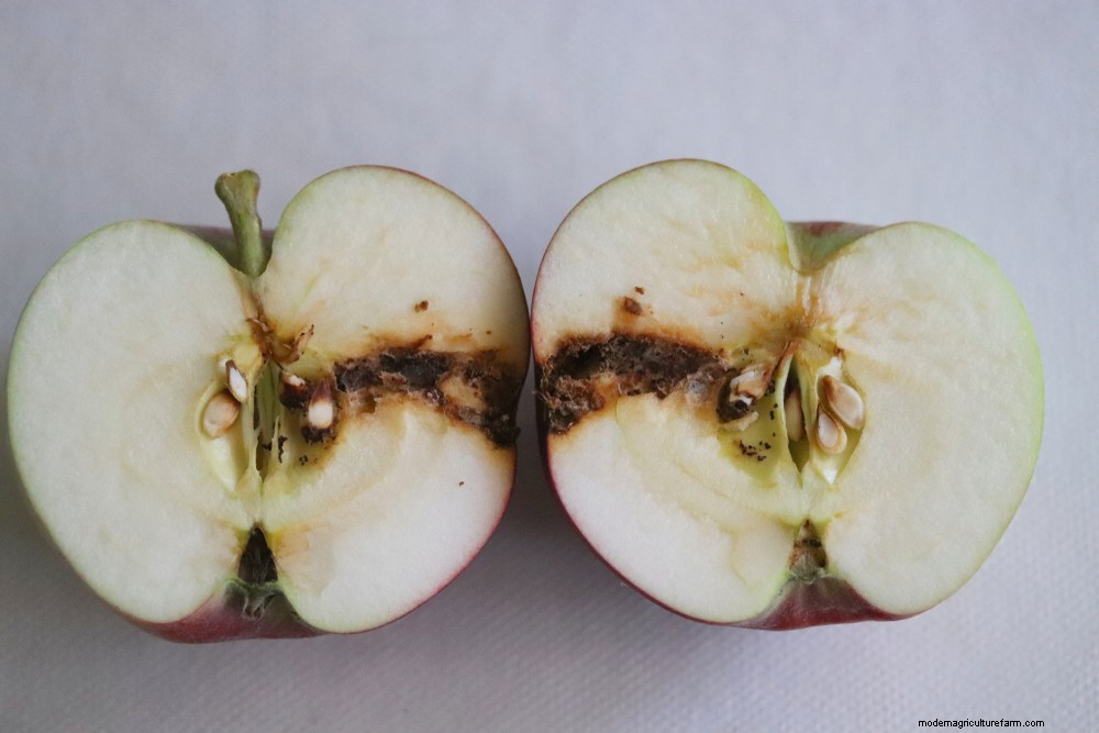 10. There are ugly brown circular patches on the apples that create lesions in their flesh.