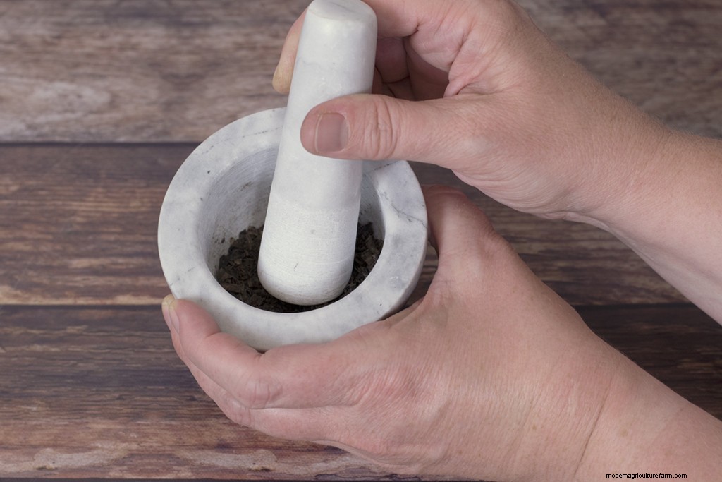 Crush the dried peels into a fine powder using a mortar and pestle or an old coffee grinder. Keep the banana peel container in a sealed jar or baggie.