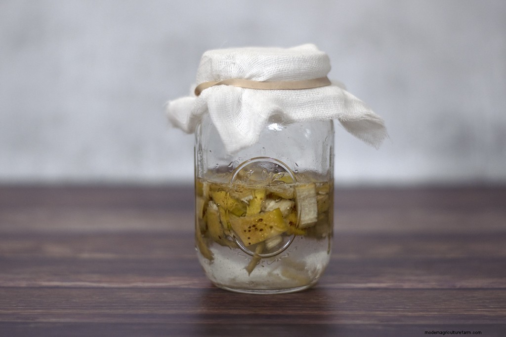 - Remove the peels after a week and recover the jar with the cheesecloth. Let the vinegar continue to ferment for another month.