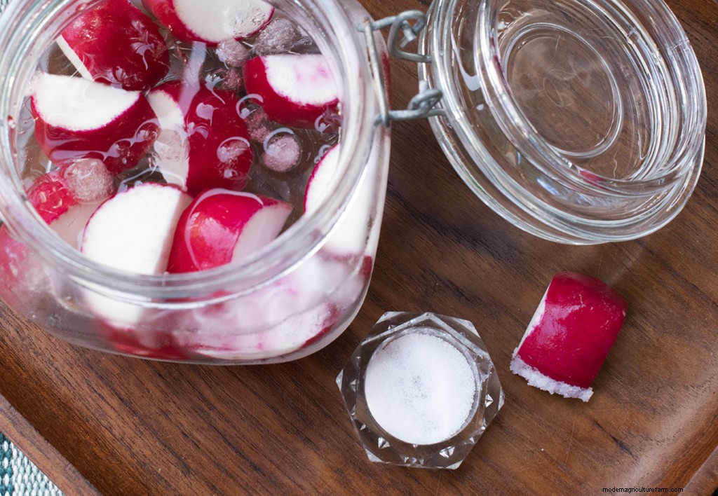 Another way to store radishes that will keep them nice and crunchy is to trim the root and stems off of them and store them in a sealed container submerged in water. Mason jars work great for this.