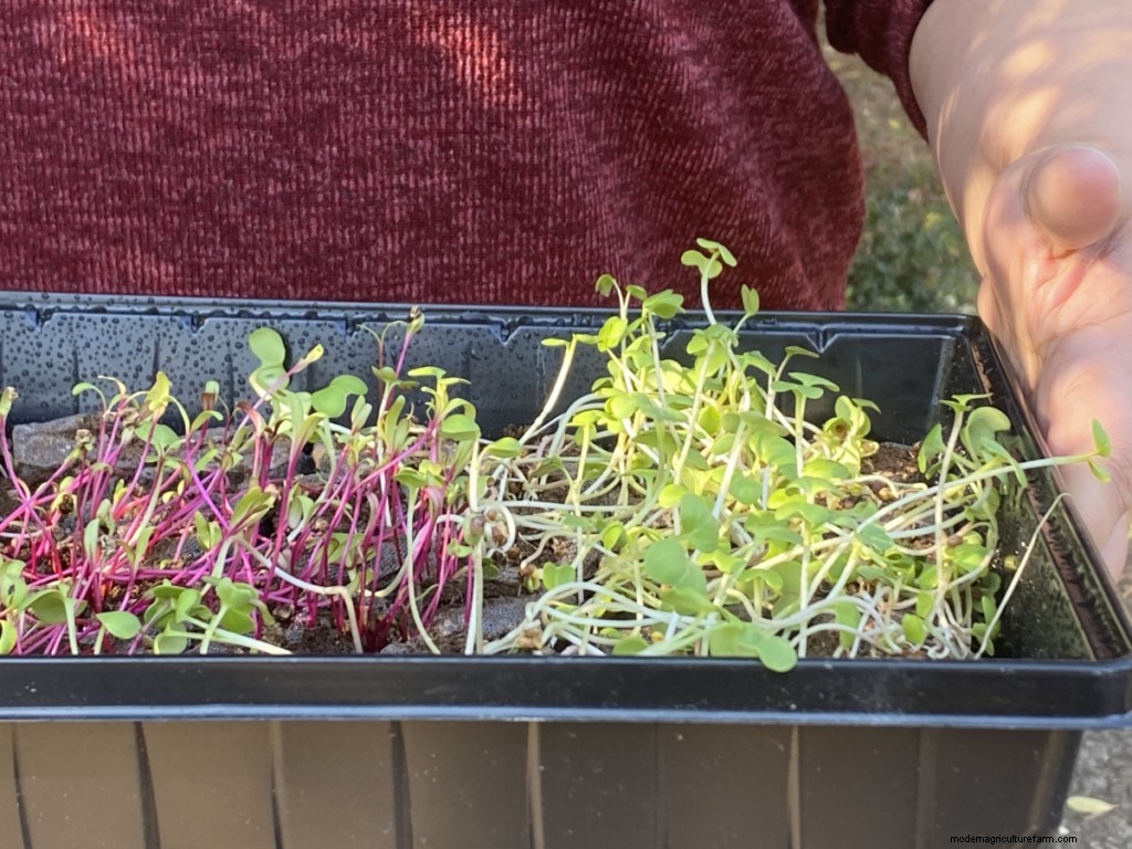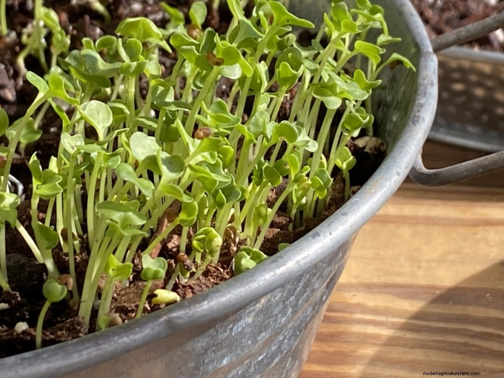 Radish: Add spice and kick to dishes with radish microgreens. Harvest in 10 to 12 days.