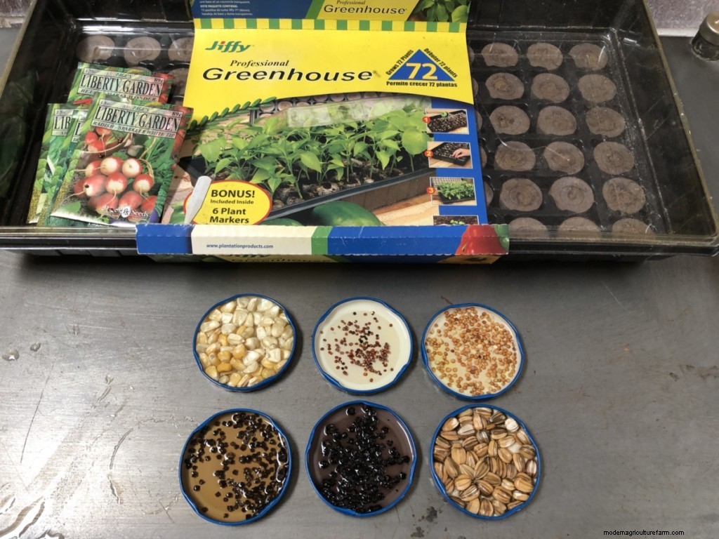 Using seed-starting trays, moisten the soil. Place the soaked seeds on top and sprinkle additional soil on top. Cover with the lid.