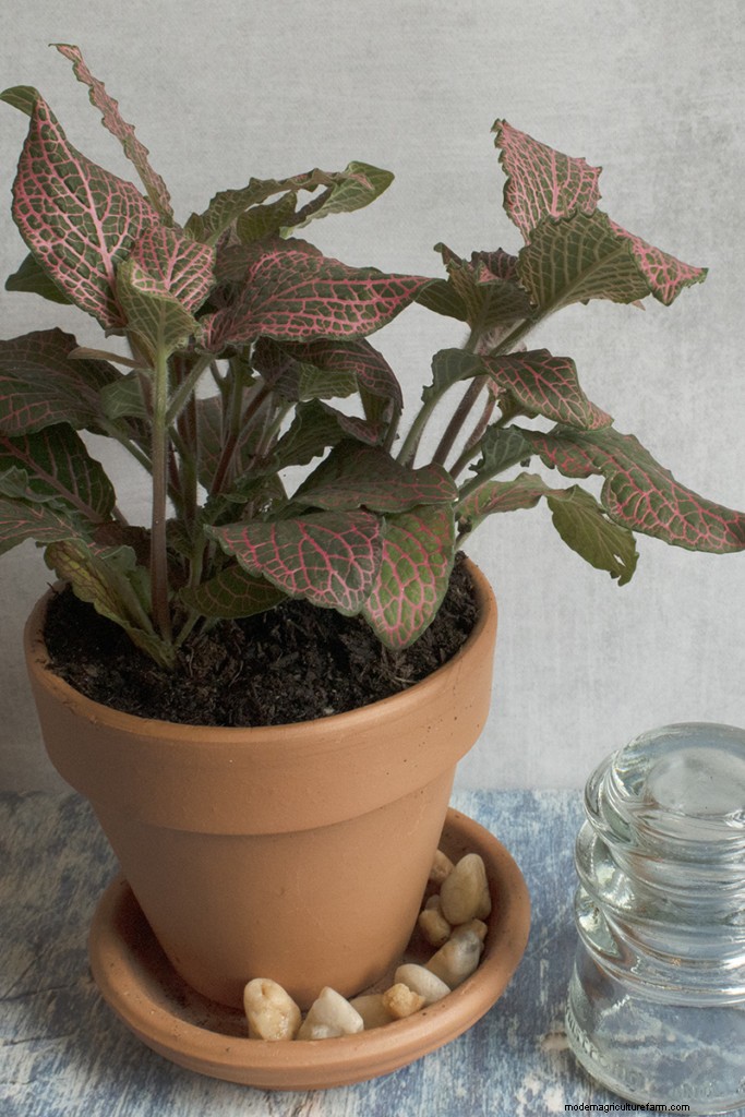 The Fittonia albivenis or nerve plant remains relatively compact when kept as a houseplant.