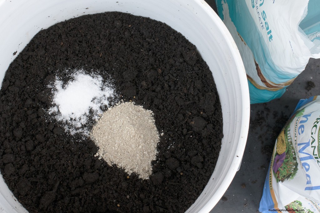 Mix about ¼ cup of bone meal and 1/8 cup of Epsom salt into the last 6” of dirt, this way, the fertilizer will soak down where it’s needed most each time you water. Mix it into that top 6″ of soil well.