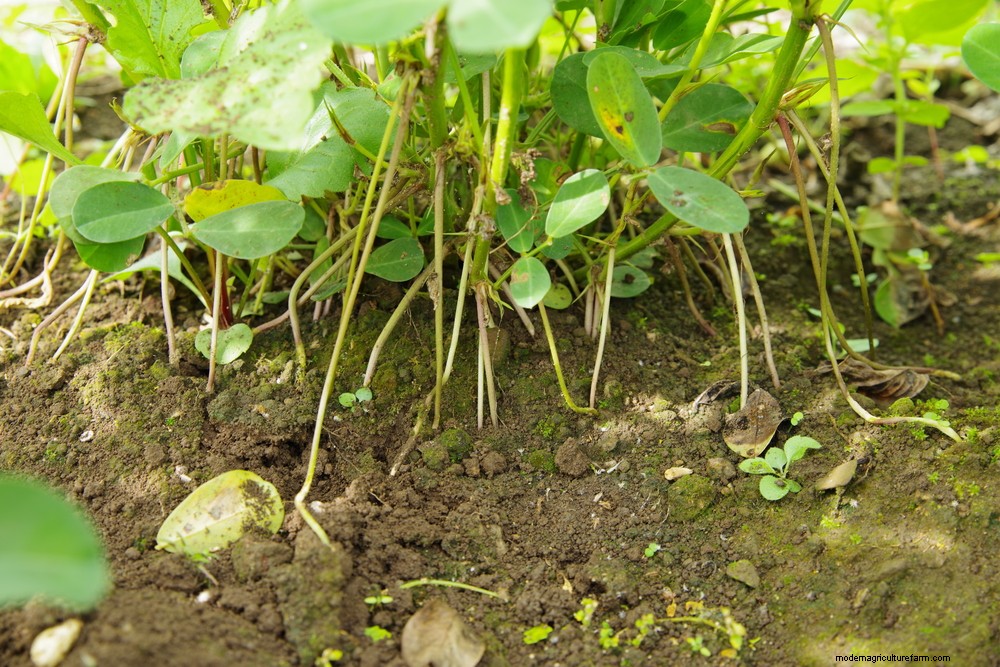 As legumes, peanuts are also useful while growing in the garden. Like other legumes, they have a symbiotic relationship with bacteria in their roots, and so play a vital role in fixing nitrogen from the air and making it available in the soil.