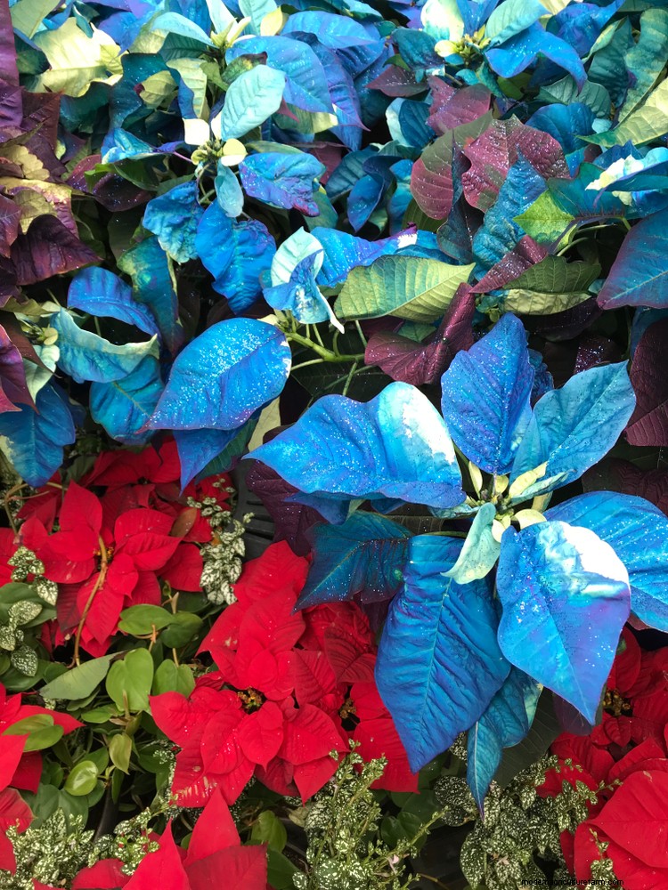 The poinsettia we buy today look nothing like the original cultivar brought back from Mexico. Poinsettia have been cultivated over the years to produce the large, showy blooms we all know and love. And these days you can get many different colored poinsettias – pink, cream, burgundy, even blue. The list seems to grow each year.