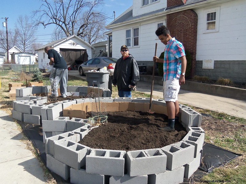 But many keyhole gardens also include a central composting area and watering point in the middle.