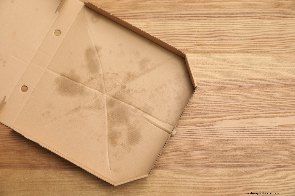 Unwaxed pizza boxes can be ripped up before adding to the heap. A little grease on the box is fine.