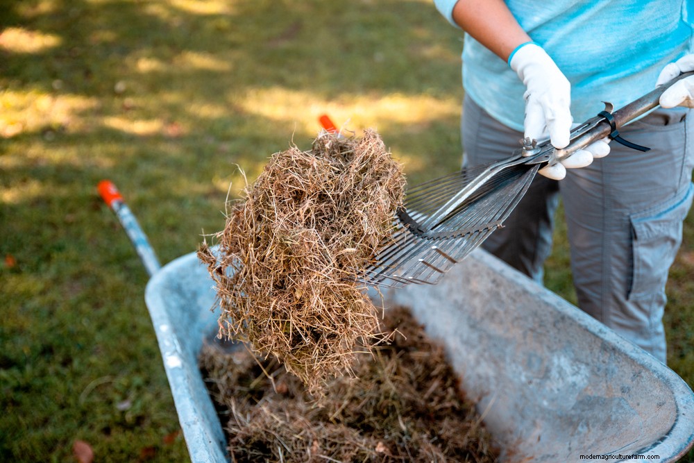 When petals and blossoms drop, sweep them up and add to the pile. Deadheaded flowers can also be added.