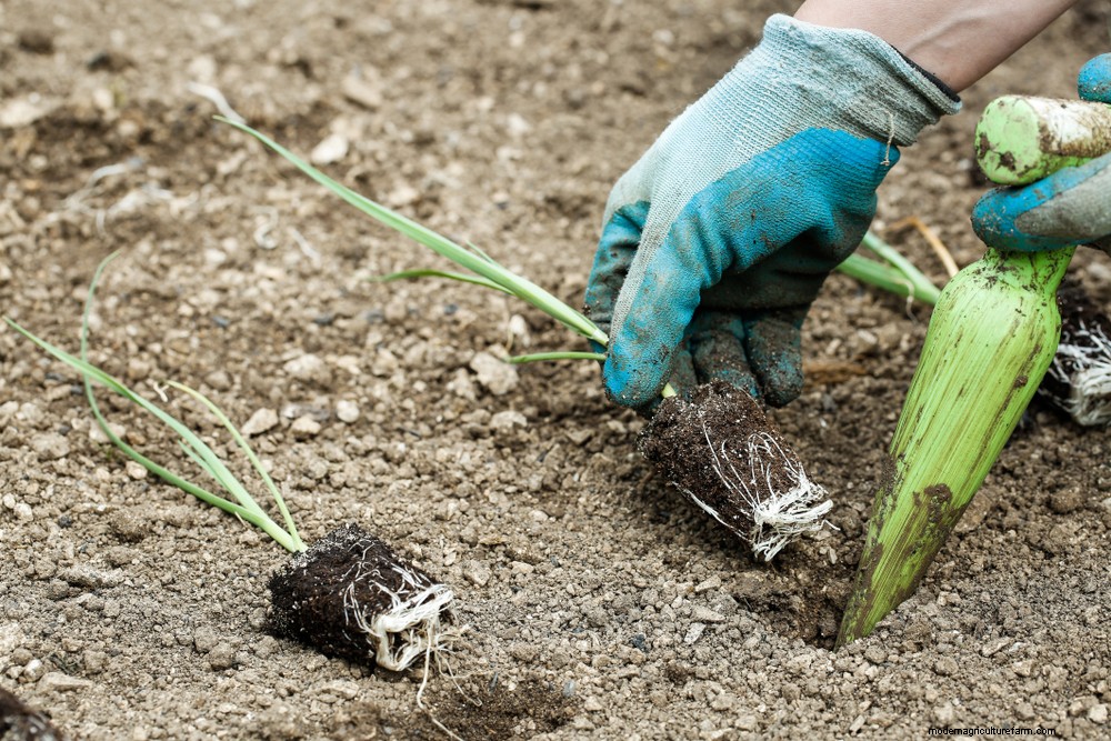 Leave plenty of space between the transplanted leeks, about 5-6″ is sufficient. At the same time, be sure to plant them deeply, with just one or two leaves above the surface of the soil.