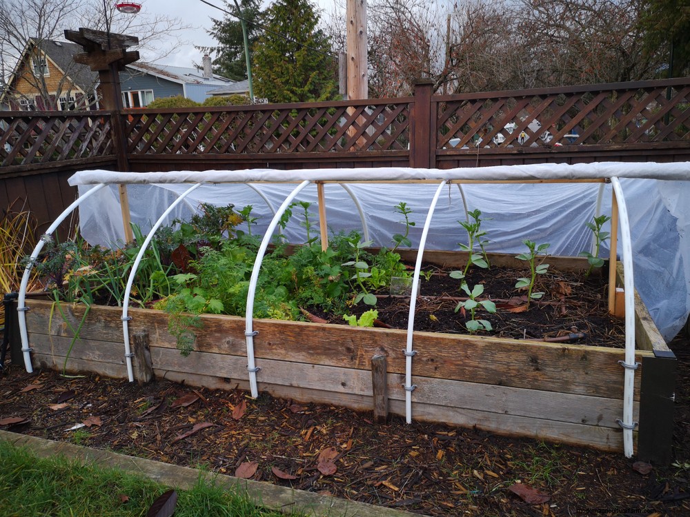 You’re seriously missing out if you don’t pair tunnels with raised beds. You’ve already got the perfect set up for a tunnel with a raised bed. You can easily extend your growing season on both ends by making your beds with a tunnel over the top of them. Once the spring warms up, you can remove the tunneling and add it back at the end of the season as the weather cools again.