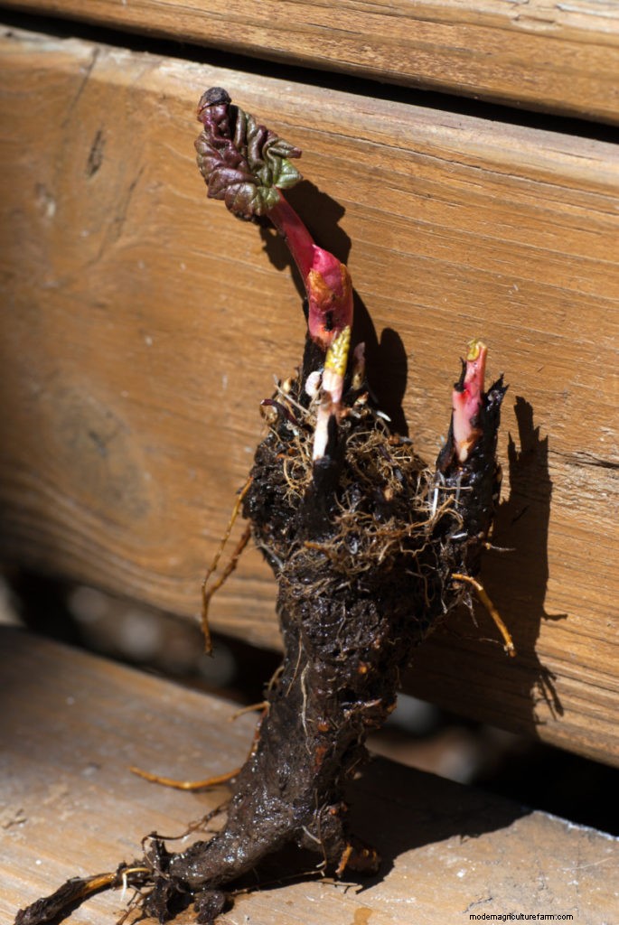The easier and less time-consuming, albeit (sometimes) more expensive, route is to start with rhubarb crowns.