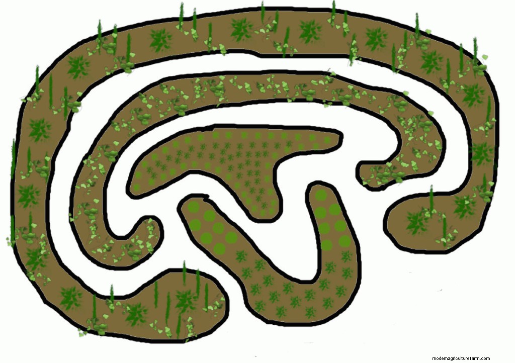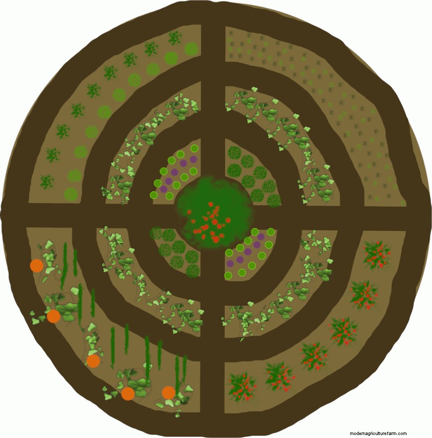 But another top layout idea for a mandala garden is to make a large, circular growing area which is reached by means of keyhole paths, which allow easy access to all parts of the zone.