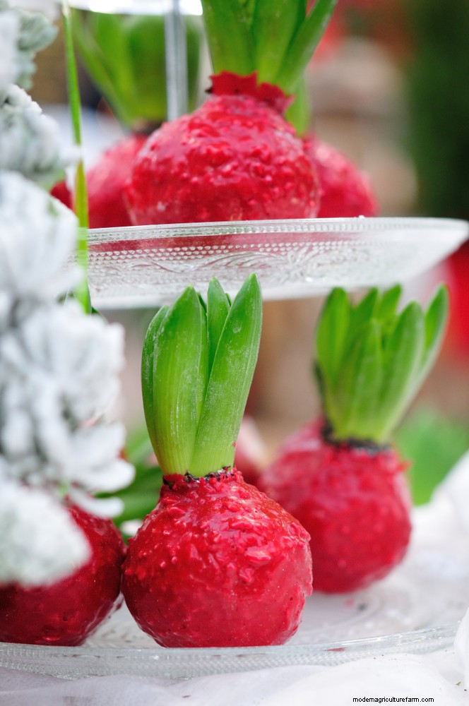 And to allow the plants to stand upright without a pot, the roots and basal plate are cut off of the bulb, and usually, a wire is inserted into the bottom to keep it steady. Without roots or the basal plate to regrow them, the bulb won’t bloom again.