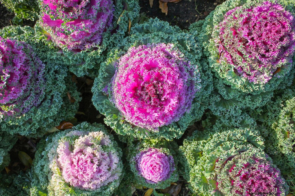 The color of ornamental cabbage intensifies in 50°F (10°C) and below. Plant these out in window boxes and porch containers in autumn to fully appreciate the changing colors as temperatures drop.